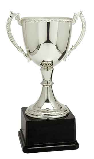Silver Completed Zinc Cup Trophy on Black Plastic Base
